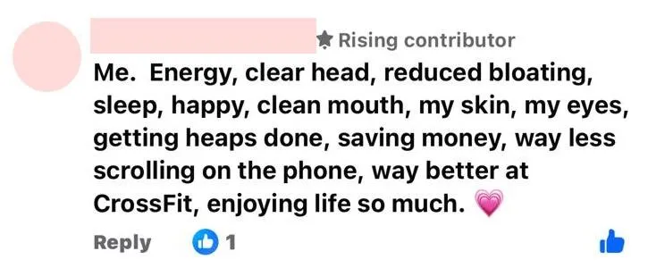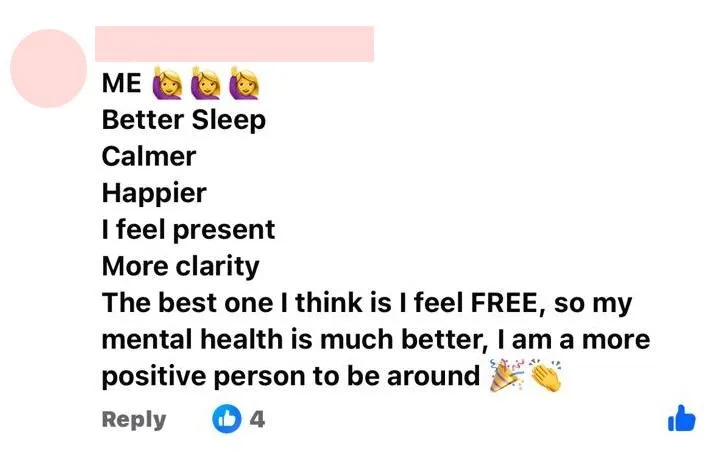My benefits were endless- improved sleep, relationships, mood, finance, motivation, opportunities, connection and self-love. It’s honestly the best thing I ever did for myself and I’m excited for the future!”