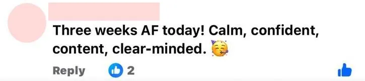 The group was so supportive. Sarah provides motivation with Facebook live chats, guest speakers, and a lot of resources, all of which aim to help us get out of the hold that alcohol has on our lives.