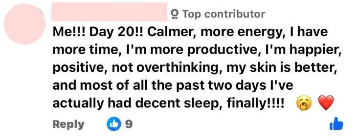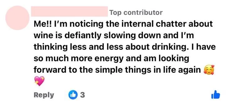 So many women from all over the world with one goal in mind - to complete an alcohol reset challenge for 30 days. The encouragement and support in the group was unlike anything I have ever experienced! Highly recommend this to any woman wanting to change her drinking habits. You don't have to suffer in silence! Hallelujah!"