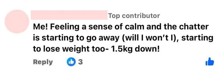 The support from you, your coaches and other members blew me away. I am so grateful for this challenge and I'm looking forward to doing other work on myself in this amazing community. Thank you xxx.”