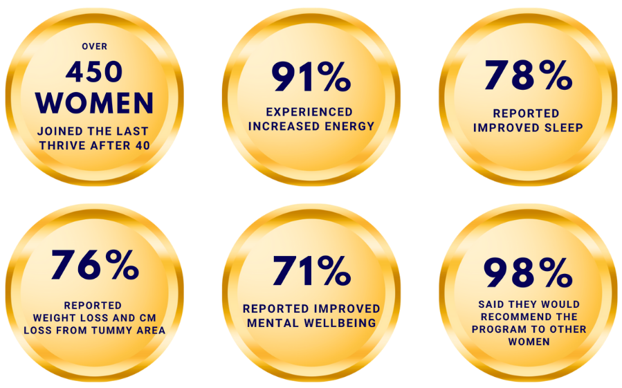 "Thrive After 40 was amazing!! A masterclass in thriving during perimenopause, menopause and post-menopause… The best 6 weeks that money can buy!
